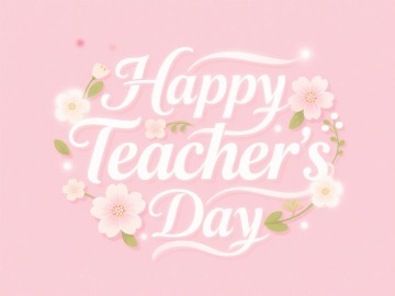 插画风黑板,轻拟物花朵点缀,清新可爱,庆祝教师节。