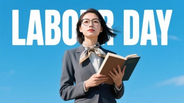 "教师节"文字,三个字的笔画由不同的文具拼接而成,放在一块简单的墨绿色背景上。