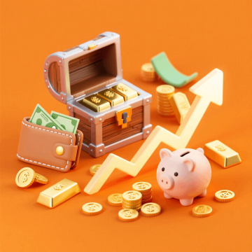 现代感3D风设计,超级符号美元标志,环绕金币与炫彩星星,彰显财富主题。