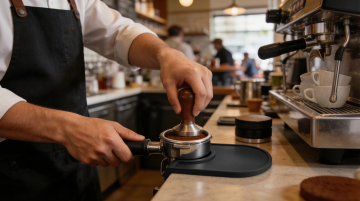 金属风咖啡机实景特写,工业感与科技感交融,重拟物设计展现简约主义美学,咖啡流淌瞬间充满现代质感。