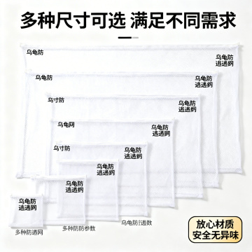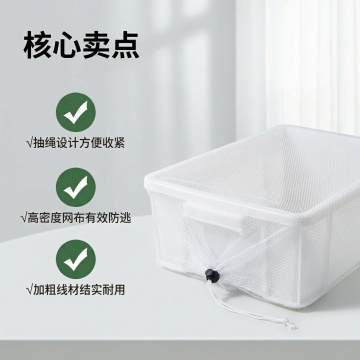 [主图 3 材质细节展示],主图主题:乌龟防逃逸网材质细节展示,氛围风格:清新干净,高亮通透,画面元素:放大镜效果放大展示网布纹理,手指拉扯网布展示结实韧性,背景为浅白色,整体干净突出细节,放大镜框清晰展示网布的密实网格结构。配色色系:主色调白色,浅灰背景,深灰色文字。视角构图:主体细节占据画面中心,放大镜效果叠加自然。文字版式:顶部主标题“高密度网布 结实耐用”,黑色粗体,右下角引线标注“密实网格 不易挣脱”文字连接放大区域,文字简洁,不遮挡核心细节。