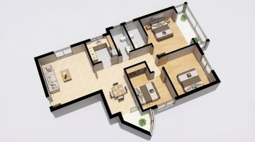 现代感3D立体户型图,融合重拟物与简约主义,塑料风质感搭配玻璃风透明元素,营造舒适温馨的家居氛围。