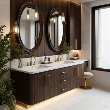 极简主义风格的卫生间室内设计,柔和的米白色与浅灰色调为主,整体明亮通透,自然光透过隐形光源均匀洒入,营造出干净、宁静、高级的氛围。浴室中央是悬挂式米白色洗手台,台面光滑整洁,台上放置简约设计的水龙头和几瓶透明瓶装洗漱用品,台下有隐藏式抽屉和开放式储物格,内置叠放整齐的毛巾与洗漱用品。洗手台上方是带LED灯带的长方形镜面柜,柜内隐约可见折叠整齐的毛巾,镜面清晰映照出浴室景象。右侧是白色壁挂式马桶,线条流畅。左侧为透明玻璃淋浴房,内部有简约的置物架和手持花洒。墙壁采用大块浅色瓷砖铺设,地面是光滑的白色大理石瓷砖,整体空间布局紧凑有序,功能分区明确。金属色毛巾架上挂着白色毛巾,与整体色调和谐统一。设计注重空间的简洁性与功能性,无多余装饰,强调材质本身的质感与光影的细腻变化,呈现出现代、简约、舒适的卫浴空间。