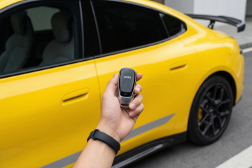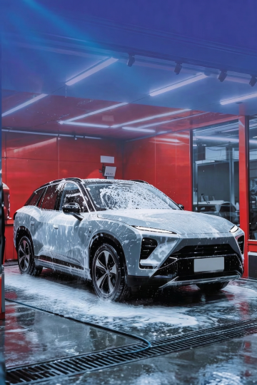 现代感与科技感交织,3D风重拟物设计,金属质感车身包裹银色车衣,荧光绿线条勾勒未来轮廓,光影交错间尽显未来感与实景感。