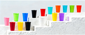 6个不同配色、不同样式、不同材质的水杯造型,采用上下两行对齐排列,整体呈现柔和的3D渲染效果,水杯表面具有细腻的哑光质感,边缘处略微反光,每个水杯底部都有淡淡的阴影投射在干净的浅色背景上,光影自然柔和,整体构图简洁大方,突出水杯的立体感和材质细节,营造出清新、现代的产品展示氛围。