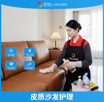 实景感家居场景,双色设计风搭配大字风标题,简约主义呈现舒适清爽氛围,传递温馨服务体验,突出新居开荒保洁的专业与信赖。