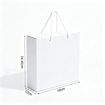 极简主义风格的棕色牛皮纸袋,配有自然色绳制手提带,袋子表面有细腻的压纹图案,整体呈现出干净利落的立体剪裁,柔和的侧光照射在袋身形成自然的明暗过渡,阴影简洁地投射在纯白色背景上,展现出简约而富有质感的静物美学。