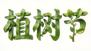 3D风虚拟自然设计,清新感十足,绿叶构成“树”字,蓝天白云映衬,生机盎然。