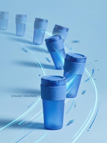 未来感3D风设计,轻拟物杯体搭配粒子光效,科技蓝调营造清爽清透氛围,虚拟现实动线展现动态新鲜力。