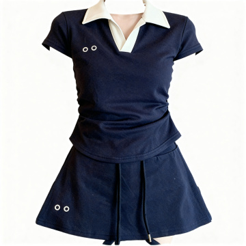 清新蓝T恤搭配多彩格纹裙,扁平风设计展现清爽甜美感,面料质感柔软舒适,适合春夏日常穿搭。