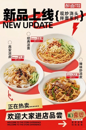 国潮风与重拟物结合,油墨质感印刷风呈现手工拉面的醇厚口感,复古色调搭配匠心文字,营造中式美食促销氛围。