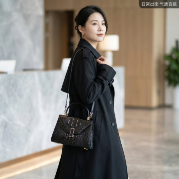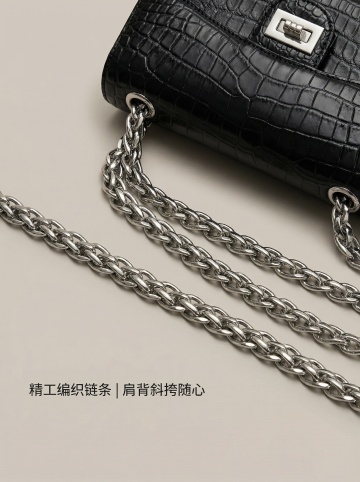 简约主义与双色设计风融合,灰色真皮搭配鎏金金属扣,光影感柔和,呈现优雅奢华的现代商务时尚。