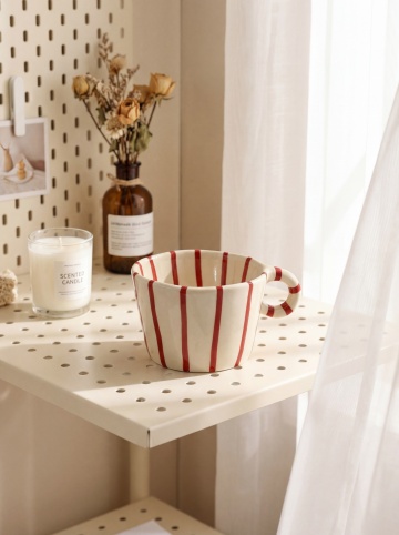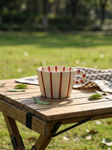 六个不同样式、不同风格、不同配色的陶瓷杯子,每个杯子都具有光滑细腻的釉面质感,如原图中红色杯子般的圆润杯身轮廓和简洁手柄设计,杯子排列整齐呈规则队形,置于纯白色背景上,整体呈现出高清晰度、明亮柔和的光线效果,无阴影干扰,突出每个杯子的独特造型与色彩特点,设计风格简约现代,信息传达清晰直观。