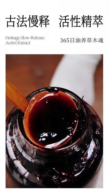 国潮风与重拟物风融合,鎏金瓶盖搭配紫金包装,置于青苔绿植间,清新优雅,唯美感十足,实景感强,传递自然与东方美学的和谐之美。