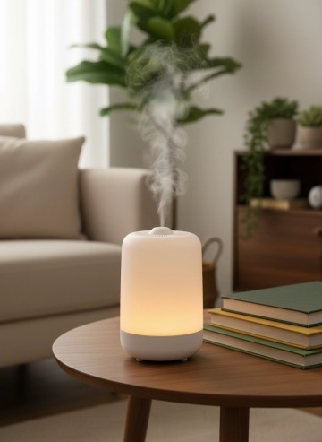 轻拟物风3D渲染,玻璃质感机身搭配柔和光影,营造静谧温馨的居家氛围,简约主义设计传递清透舒适感,实景感十足。