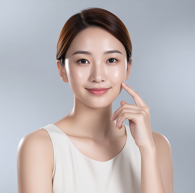超高清美妆人像摄影,极致清透白皙的皮肤质感,展现细腻毛孔与健康光泽,柔和自然光从斜上方照射形成立体光影,浅棕色发丝优雅挽起露出光洁额头与精致侧脸,模特以自然姿态轻触脸颊,眼神清澈望向镜头,整体色调以纯净白与柔和粉为主,营造高级感与纯净氛围,突出皮肤的水润通透与完美状态,极简背景凸显主体,构图聚焦面部特写,呈现专业美妆广告级别的细腻肤质与自然美感。详情