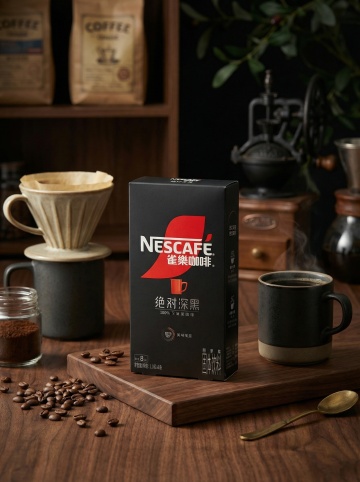 光影感与实景感交织,玻璃风杯中咖啡清透浓郁,搭配质朴咖啡豆,简约主义构图传递柔和舒适氛围,轻拟物风格强化视觉质感。