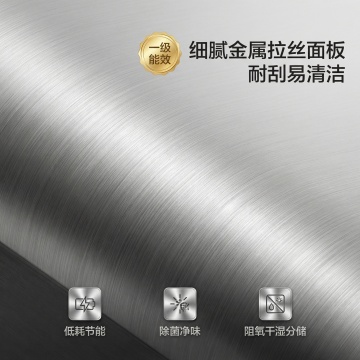 金属拉丝质感,融合现代科技与工业美学,扁平化设计搭配轻拟物图标,简约主义风格突出产品功能,展现高端家电的精致细节。