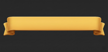 一个金黄色的缎带横幅,具有光滑的丝绸质感和细腻的高光阴影处理,呈现出微微弯曲的悬挂形态,两端自然垂下并向内卷曲,整体造型优雅流畅,背景为纯白色,保持3D渲染的数字艺术风格,光影过渡自然柔和,色彩饱和度高且明亮。