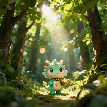 国潮风萌龙童,软3D质感,鎏金纹饰与毛发生长细节交织,梦幻光影环绕,液态流光点缀,喜庆红金背景烘托节日氛围,尽显可爱与华丽。