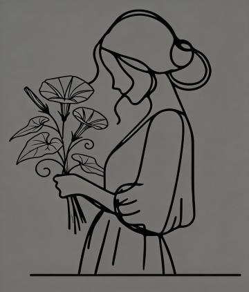 一朵由流畅、连续、富有韵律感的单一黑色线条勾勒而成的玫瑰花,线条呈现出手绘感的自然粗细变化和轻微的笔触纹理,花茎细长,带有两片简洁的叶子,底部有飘逸的曲线装饰,背景为纯净的纯白色,整体风格简约、现代、优雅,具有极简主义设计感,线条轮廓清晰,无填充颜色,仅以线条构成完整的玫瑰形态。