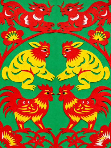 工笔风金鸡报晓,国潮元素融合,鎏金装饰增添喜庆感,展现中式美感。