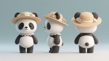 软3D风格的可爱熊猫,毛发生长细腻,卡通感十足,萌趣生动,适合节日IP形象设计。