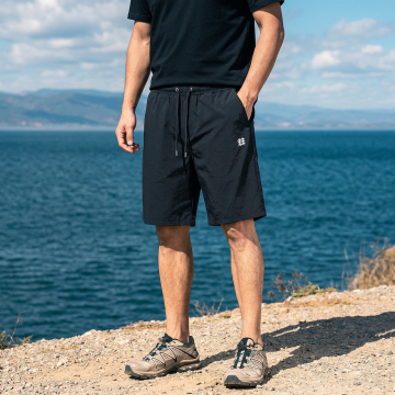 简约机能风短裤,融合时尚感与舒适感,多口袋设计凸显潮流细节,面料质感出众,搭配白色运动鞋,尽显都市休闲美学。
