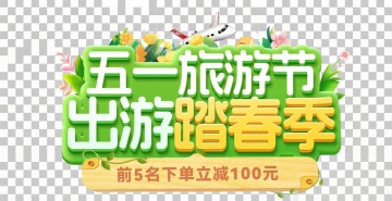 3D风大字设计,霓虹灯效果点缀,清新甜美,五一假期主题。