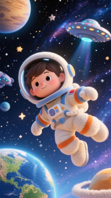 毛线刺绣太空套装:火箭、宇航员、星球星星