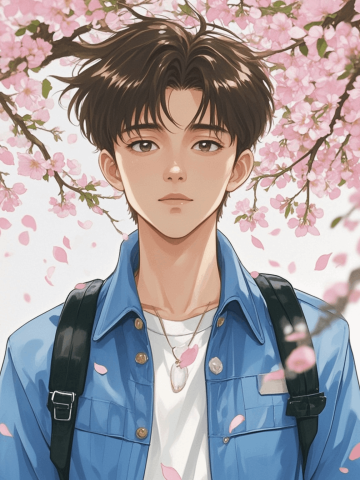 梦幻樱花林中,少女仰望飘落花瓣,水彩风插画渲染出清新柔美的春日浪漫,光影交织间尽显唯美动漫意境。