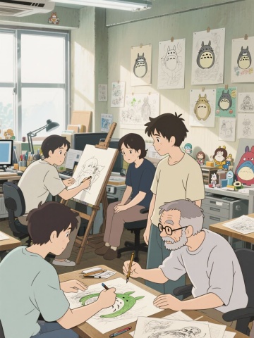 温馨插画风,卡通家庭草地嬉戏,色彩明亮,尽显欢乐时光。