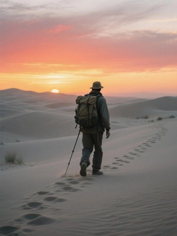 剪影风人物背影行走在夕阳下的乡间小路,胶片色调渲染实景感与光影层次,静谧中透出励志前行的力量。