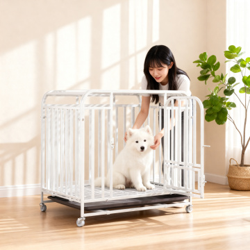 白色不锈钢狗笼,保持物理结构绝对不变,严禁扭曲变形。放置在客厅靠窗浅米色短绒地毯上,背景是大白墙搭配ins风装饰画,旁边放一个藤编边几,上面放一瓶浅色系鲜花。整体画面更清新透亮,低饱和奶油色调,柔和漫射自然光,阴影极淡,非常明亮干净。平视居中构图。狗笼里面坐一只成年白色萨摩耶,第四位不同的美女盘腿坐在旁边地毯上,温柔和狗狗互动,笑容清新,淡妆松弛。整体氛围超清新治愈,充满生活感,4K超清商业摄影,保持狗笼结构清晰完整。