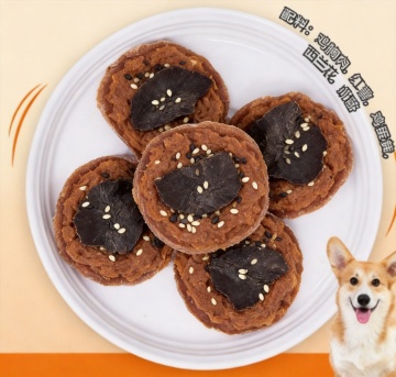 温馨可爱的卡通拟人风设计,轻拟物手法呈现宠物零食,双色印刷风格搭配萌趣柯基,传递节日般治愈感。