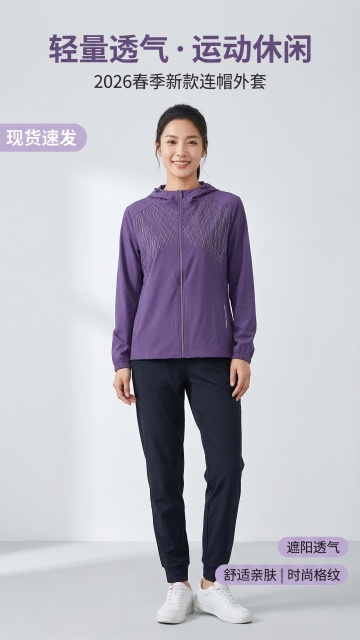现代简约风紫色立领夹克,融合性冷淡美学与面料质感,展现时尚商务通勤的舒适百搭气质。