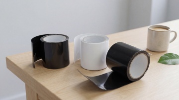 六个不同配色的胶带素材,每个胶带具有不同样式,采用真实胶带材质,呈现出自然的褶皱和边缘不规则感,浅色背景,上下两行对齐排列,整体构图简洁,突出胶带本身的质感和色彩差异,具有清晰的视觉层次,适合作为设计素材使用。