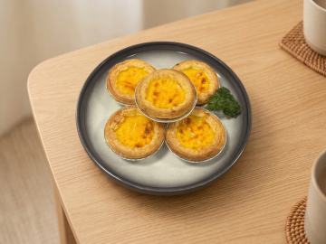重拟物风蛋挞,油画质感光影渲染,实景感十足,暖色系烘托温馨氛围,细腻纹理呈现柔和触感,节日甜点视觉盛宴。