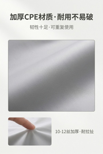 第6屏:质量对比突出本品优势,严格还原上传产品参考图,精准复刻包装设计、产品配色、LOGO位置及比例、文字内容及字体、图案元素及细节,无任何偏差,色彩无失真;产品与画面中其他物体的比例遵循真实物理空间逻辑,视觉协调,比例还原1:1,杜绝比例失衡、视觉突兀;高级简约风格,莫兰迪灰为主色调,辅助色为米白色、浅红色劣质款标识用,饱和度30%,明度80%,柔和自然光从画面顶部均匀入射,光影柔和,对比清晰;主标题"品质对比·优劣立现"位于画面上1/3居中,字体为简约无衬线体,字号32px,颜色深灰色,加粗;副标题"好材质·更耐用"位于主标题下方8px处,居中,字体为简约无衬线体,字号18px,颜色中灰色;画面中下部采用左右对比布局,左侧为本品,右侧为普通劣质款,中间用浅灰色竖线分隔,标注清晰;左侧本品:中号磨砂收纳袋,袋身厚实,磨砂质感均匀,拉链顺滑,标注文字"10-12丝加厚CPE·耐拉扯·无异味",字体为简约无衬线体,字号16px,颜色深灰色;右侧劣质款:同款同尺寸透明薄款塑料袋,袋身单薄、易起皱,拉链卡顿,标注文字"薄款PE材质·易破损·有异味",字体为简约无衬线体,字号16px,颜色浅红色,前方加"×"标识;下方增加韧性对比示意图,左侧手指拉扯本品无变形,右侧手指拉扯劣质款出现撕裂痕迹;画面留白35%,左右对称留白,无多余装饰,仅在对比区域边缘点缀细灰色线条,突出对比效果;整体通过直观对比,凸显本品材质、韧性、耐用性优势,让用户清晰感知品质差异,高清300dpi,无模糊、无噪点
