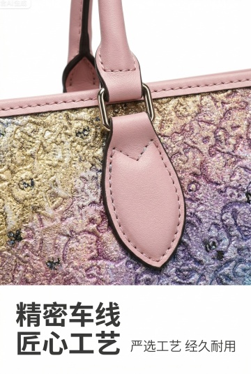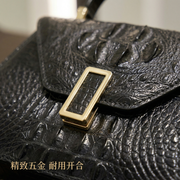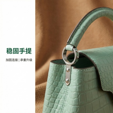 简约主义与双色设计风融合,灰色真皮搭配鎏金金属扣,光影感柔和,呈现优雅奢华的现代商务时尚。