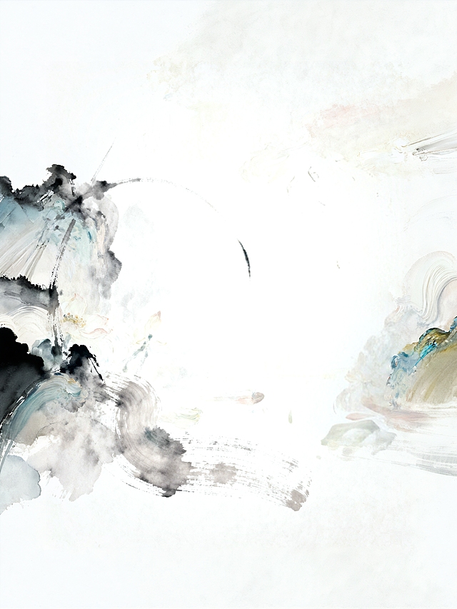 保持原图水墨远山内容不变,让图片**左右两侧**也调整为从原图自然渐变为纯白色,上下左右四边都实现自然渐变到白色的效果,渐变过渡自然柔和详情