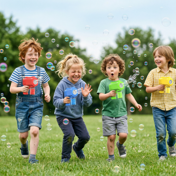 轻拟物风设计,结合实景感与梦幻泡泡粒子,营造清新可爱氛围,童趣十足的户外场景,传递温馨与趣味感。