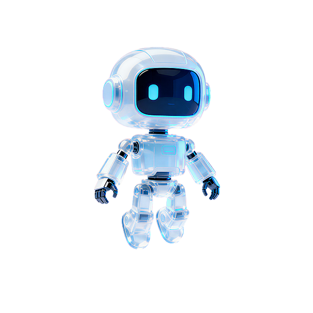 去除图片中所有的花瓣网logo水印,保留原有3D蓝色智能机器人形象,保留纯白色背景,修复图像细节,保持超清画质,完整保留机器人和透明面板内容,不改变整体构图和风格详情