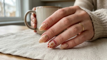 轻奢高级风美甲宣传图,金色渐变甲片搭配珍珠饰品,浅灰大理石纹理背景,精致感,高端美甲沙龙