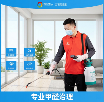 实景感家居场景,双色设计风搭配大字风标题,简约主义呈现舒适清爽氛围,传递温馨服务体验,突出新居开荒保洁的专业与信赖。