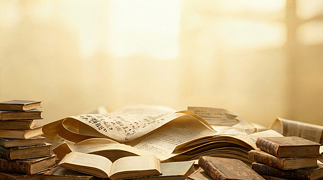 安静的图书馆场景,阳光透过玻璃窗洒入,一双手正在木质书桌前轻轻翻动一本摊开的旧书,书页微微扬起,书架背景隐约可见,氛围宁静且富有书香气息,暖调光线,高清写实风格详情