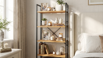 极简主义室内场景,左侧保留原木色竖条纹木格栅墙元素,右侧为米白色平滑墙面,中央悬挂一个白色球形吊灯,下方是圆形白色桌面、浅色木质交叉腿设计的桌子,地面铺设白色大理石瓷砖,右下角有一块浅灰色地毯。背景改为柔和渐变的浅米色至淡灰色过渡,光影调整为从右上角窗户斜射而入的温暖午后阳光,在地面形成清晰的长条形光斑,墙面呈现出由明至暗的自然光影渐变,整体保持3D渲染的细腻质感、干净利落的线条和简约高级的现代设计风格。