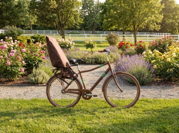 现代感与科技感交融,简约主义设计的电动自行车在都市绿意中展现时尚潮流,金属质感与实景环境呼应,传递舒适清新商务出行新体验。