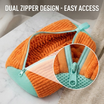 展示双拉链开合设计,纯白背景,搭配一双休闲鞋,产品保持原图不变,尺寸1000X1000,切片效果,突出英文'DUAL ZIPPER DESIGN - EASY INSERT & REMOVE SHOES'
