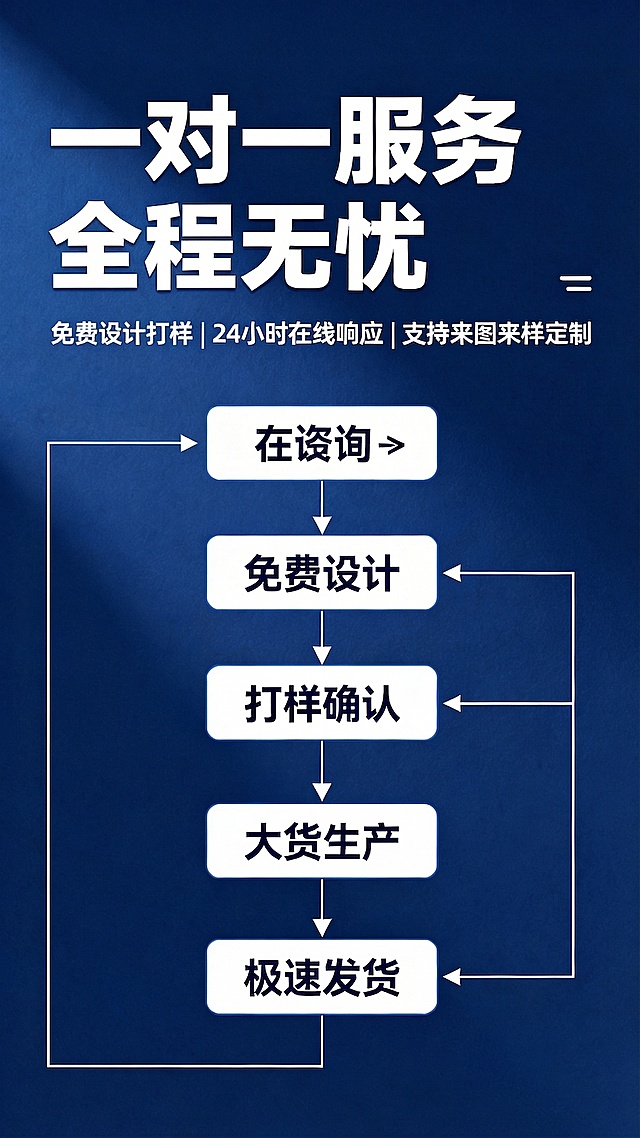 按照这个图片帮我设计一个定制流程图 步奏:沟通要求,报价,样品确认,签订合同,支付预付款,安排生产,支付尾款,物流派送,售后服务「图片1」不要证书展示,要求:白底详情